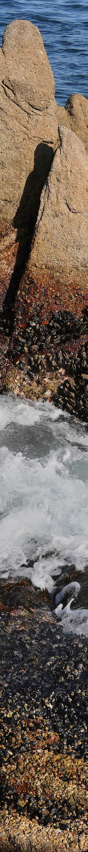 On Tuesday April 16, 2024, I drove the 70 miles to Point Lobos State Reserve where I worked a few mediocre subjects. The park is in the later stages of rebuilding it south shoreline visitor areas and apparently those in charge have adopted the same fenced trail only access as their north shore areas that eliminate access to some areas that used to be accessible. So I then drove to Pacific Grove shores where I enjoyed a day along its Hays Perkins Shoreline Park areas. Later in the afternoon at 4:35pm at Lover's Point, worked the above modest craggy granite outcrop and its mussel covered rocks.