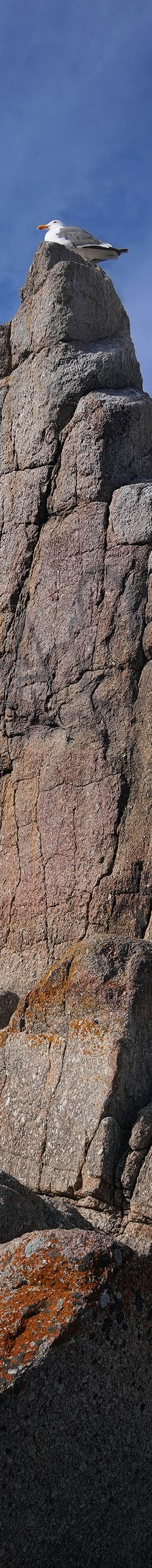 At Lover's Point are some of the most bold and comically aggressive ground squirrels one might encounter anywhere due to many people who will feed them. That location has a narrow granite pinnacle seagulls like to perch on. In this image, was able to also capture one of those squirrels in the same frame.