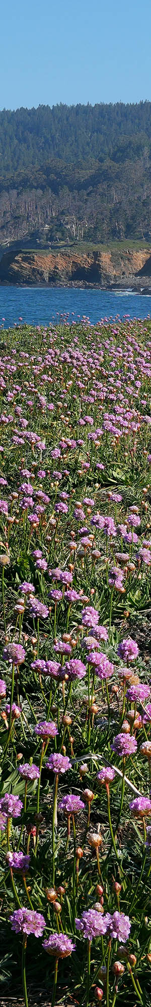 At 8:54am, a seascape bluff with an expanse of sea thrift, armeria maritima, also called sea pink. One of the few species that does not close up at night and colonizes windiest bluff edge areas.