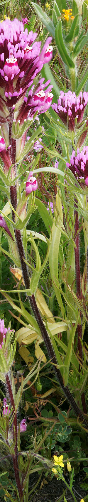 Owls clover, castilleja exserta, were common in the area so I found one nice group for a portrait below that includes a few goldfields, fiddleneck, and filaree.