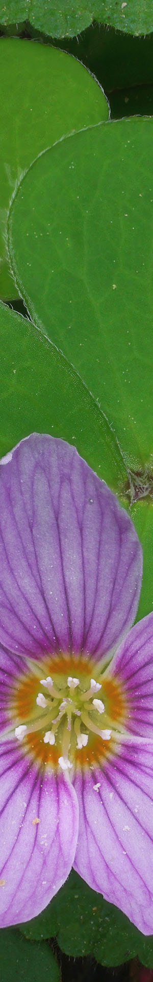 This next image above is the most common species in our redwood forest understories, redwood sorrel, oxalis oregana, that has particularly beautiful tri-heart shaped leaves. The flower itself is a beauty too with magenta veins on 5 white petals and an inner orange ring in the throat. Ten white anthers provide pollen at center. And here is a secret to surprise others since they all appear green looking downward, the underside of the mature leaves are a surprising red.