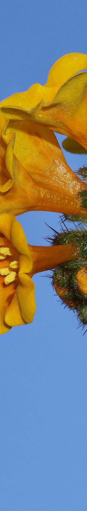 The next image above is one of the most common wildflowers in our state and generally considered one step above a weed. The common fiddleneck, amsinckia intermedia, does indeed have a beautiful side as captured above against nice blue sky with flash as it was in shadows. However more often it overwhelms other species covering areas densely, has unpleasant itchy bristles, and its stems, leaves and later flowers turn unaesthetic hues. Not many of our wildflower species are orange and in some places dense swaths of fresh fiddleneck fool people at a distance into thinking they may be seeing poppies. Well the orange lasts just a few days before bleaching in sunshine to increasingly lighter yellows.