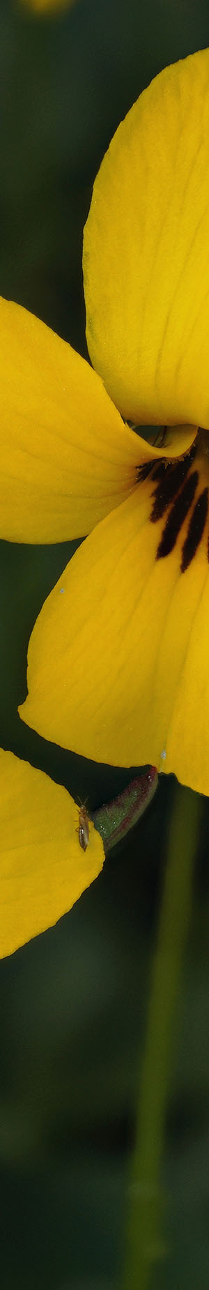 Drove on to a more obscure dirt road in an arid canyon with tall dense chaparral and found an abundance of dense wildflowers just like I'd seen years before. Enough to keep me busy with close-ups for hours so went to work. Obviously the same localized heavier rains that left the Paso Robles area a bit south rather green had also visited these areas. A bit of poison oak was here and there I kept a distance from. More seriously with vegetation and cover to feed a fair population of rodents, it was prime rattlesnake terrain so moved around slowly with visual awareness. Above is a duo of one of our several California yellow violet species, stream violet, viola glabella. Yes that is a bug on the right petal end of the lower flower that one can take a better look at with the vertical slice. Used a lens extension tube and diffusion disk with fill flash.