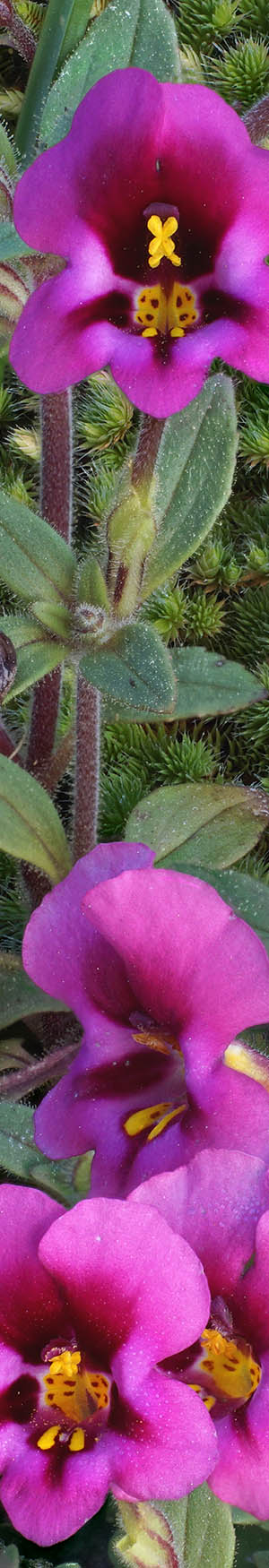 In many places the rock hard basalt geology has formed cliffs and that is the primary reason for so many waterfalls in the reserve. Basalt tends to form six-sided vertical columns and in places there are short cliffs in ravines that provide alcoves for intimate flower subjects like the above. In such places one will more often find species that are uncommon in the open grasslands. I spent considerable time sitting in front of this scene with my 60mm lens trying to capture a 2x2 pano but the breeze was simply a bit too uncooperative. Thus put my 30mm lens back on and was content to work through a set of 8 focus stack shots waiting for reasonable lulls to make a single frame image. The beautiful little magenta species is Kellogg's monkeyflower, mimulus kelloggii, that tend to be found on mostly barren rock patches. Another species here I haven't mentioned wherever cattle graze is the ubiquitous alien Eurpoean red storksbill aka filaree, erodium, with their long upturned beaks. See their two side by side light pink hued flowers center left frame?