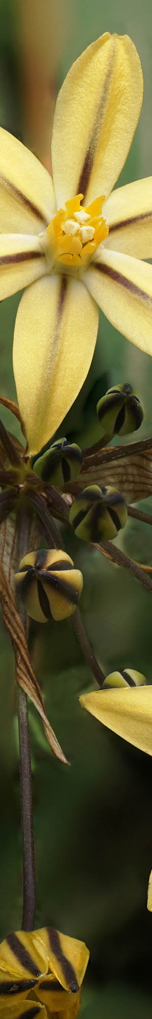 Nearby were also scattered Leichtlin's mariposa lily, calochortus leichtlinii, one of the large 3-dimensional mariposa's I'd hoped to work so hunted about till finding a very nicely shaped specimen above. The species is most common about Yosemite forest elevations and also about the Jeffrey pine forests of the east side of Sierra.