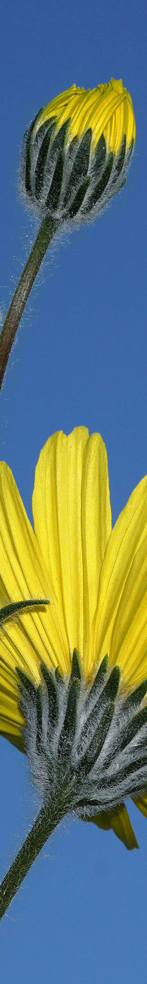 In the afternoon drove out on one of the several dirt roads in the area that after a modest distance becomes a 4WD only route. I'd surveyed Google Earth for colorful geology areas that might provide better backgrounds for flower fields and this ancient Precambrian Era, Kingston Peak Formation, iron rich rusty clasts of metamorphosized conglomerate quartzite geology in the above image, did not disappoint. Although part of the Black Mountains indeed has areas of very dark rock, other zones of strata are not dark at all with the above richly orange-red hues providing a superb background for the intensely yellow and fragrant desertgold, geraea canescens, sunflowers. When even mild breezes are blowing over flower fields I tend to use my 30mm lens taking fewer shots because flower movement causes stitch blending issues. To cover the same area with my 60mm lens would require taking 4 times as many shots with each shot requiring waiting for breeze lulls and motion blurring would be more visible.