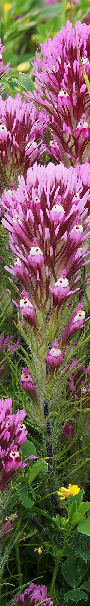 The next image shows a group of large robust owl's clover with hill lotus, acmispon brachycarpus, that were common on the same slopes. Additionally with the owl's clover were annual lupine and just emerging arroyo lupine.