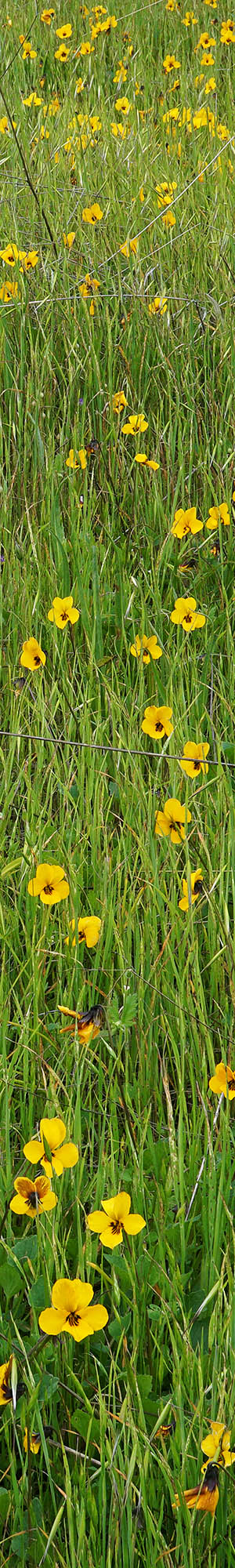 My final image of the day was the above intimate landscape of johnny-jump-up amid the grasses they seem to prefer to be residents within. For such a pessimistic day I had managed some nice images however there was so much the wind prevented my capturing that I began mulling how I might take a day off this coming midweek despite having to deal with preparation and logistics for a week long desert road trip by the weekend. That is of course an issue with chasing spring wildflower landscapes during wet years in California. There are many places in the state where strong blooms occur at the same time and one can only be at one place at a time, so choices must be made. A strategy of spending a rushed single day at a list of places is not likely to be productive so the wiser plan in my experience is to just pick the most important destinations then allow enough time at each. In a week, the current week's rains ought to boost numbers of johnny-jump-ups and goldfields while providing extra growth for plants already in bloom.