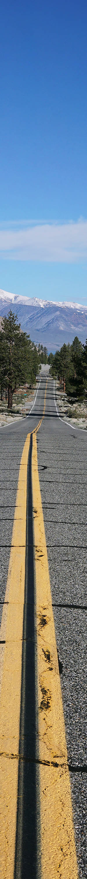Back on SR120, I moved to a location I'd surveyed with an interesting view down a straight stretch of highway with a bit of Mono Lake's blue waters behind. Be sure to check the full yellow stripe with the enlarged vertical slice view below this image.