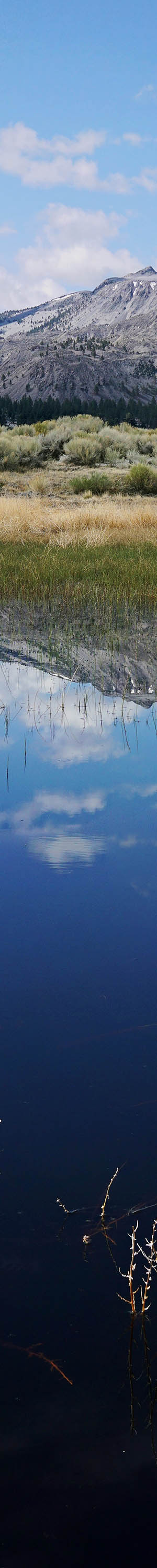 From the same marsh pond, the above image view is due south towards Mono Craters. In a few weeks all of last years blond grasses will be green and the bits of snow on the crater peaks will have long melted. Beyond the grasses are mostly rabbitbush that bloom yellow late summer. And in the distance a forest of jeffrey pines where I often remotely disperse camp. Average May high temperatures at Mono Lake are a pleasant 67F degrees while July and August highs average in the upper 80s. This period of greenery and life in these sagebrush steppe lands in the eastern rain shadow of the Sierra Nevada is brief before unpleasant heat dries much up.