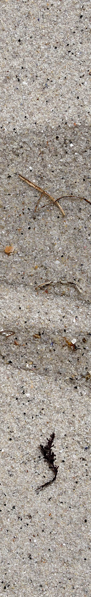 The next lazy morning of Wednesday June 29, 2022, after departing from my bros, drove back to the Pacific Grove where I had to wait till a bit after midday for the fog to burn off. Thus more hours of exploring shoreline areas then enjoyable street walking exercise along the shoreline paved path while listening to music on my MP3 player earbuds. This sand close-up was shot at 1:45pm PDT just after the rising tide pushed a finger of wave seawater onto dry sand. Such a subject with fine detail that is lost when downsizing views more interesting at 100% pixels, thus look via the enlarged vertical slice view.