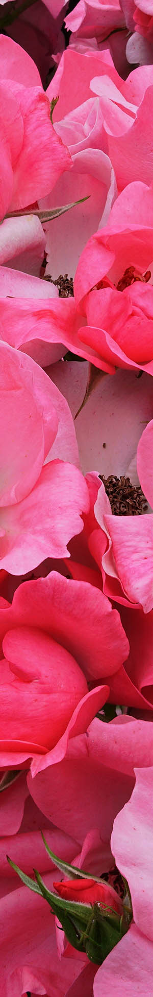 Rainbow Sorbet: Floribunda. Deep pink, yellow edges. Mild, sweet fragrance. 18 petals. Average diameter 3.5 ft. Continuous (perpetual) bloom throughout the season. Pointed, ovoid buds. Edged in deep pink, this golden yellow beauty blooms early and abundantly — and continues all season long. Remarkable disease-resistance and very winter hardy. Medium green foliage. Height of 4' to 5'.