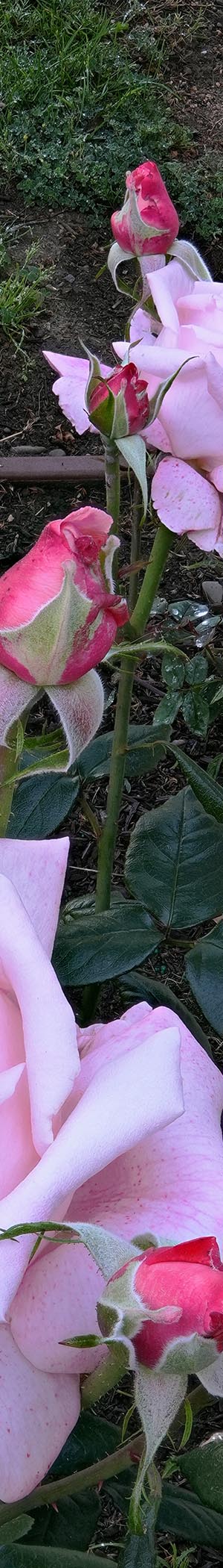 Worked on Wednesday May 1, 2024 Violet's Pride cultivar roses from a lens vertical angle at SJMRG plot 5.