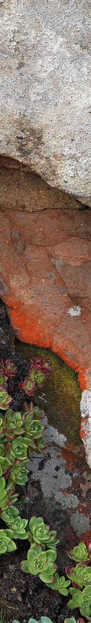 The state park rocky shores have an abundance of fantastic looking sandstone features so before wildflowers would open up, I explored those areas. This first close-up subject above shows sea lettuce, dudleya caespitosa and lichen covered sandstone. The Reddish orange areas are, orange rock hair algae, trentepohlia aurea, a species of filamentous terrestrial green alga.