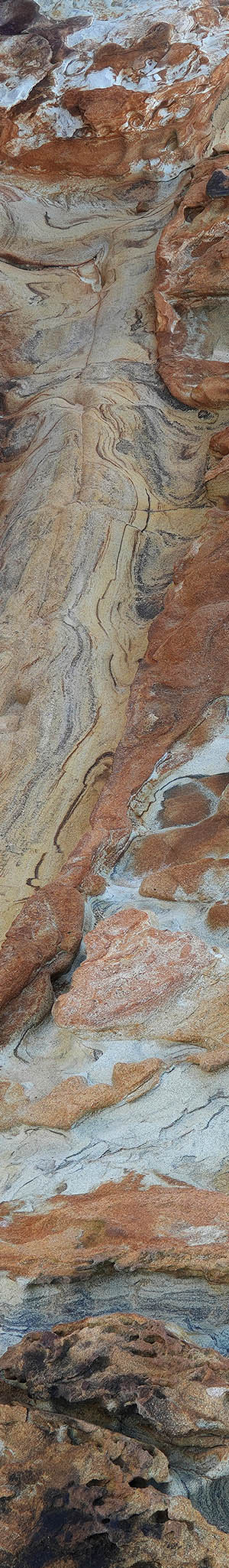 At 8:09am, Salt Point State Park has the most impressive sandstone tafoni formations on our coast. The above colorful subject has some blue-gray and rusty sandstones.