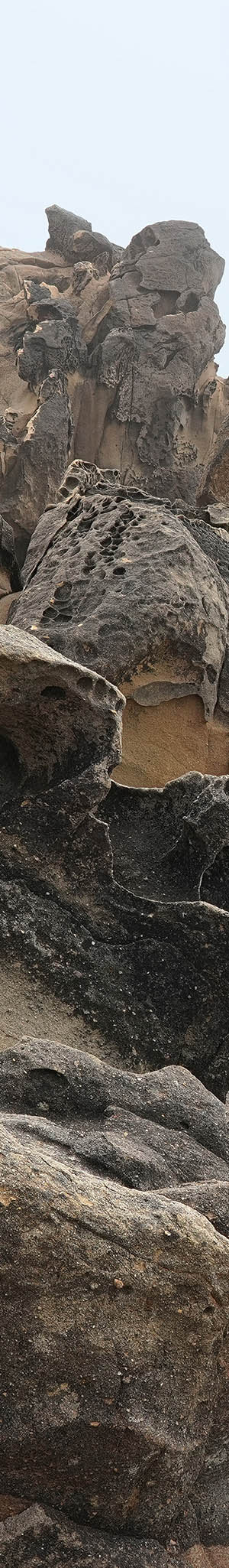 At 3:03pm seascape with gnarly tafoni sandstone outcrops.