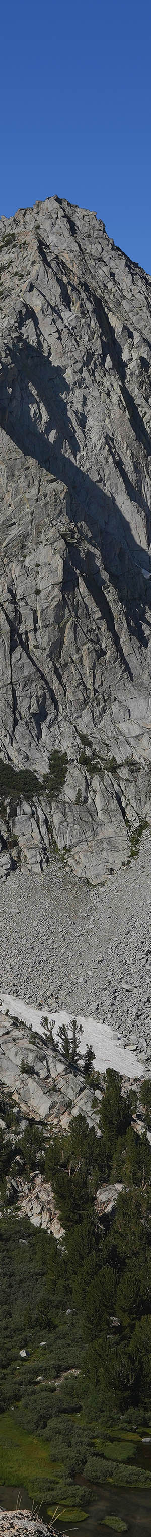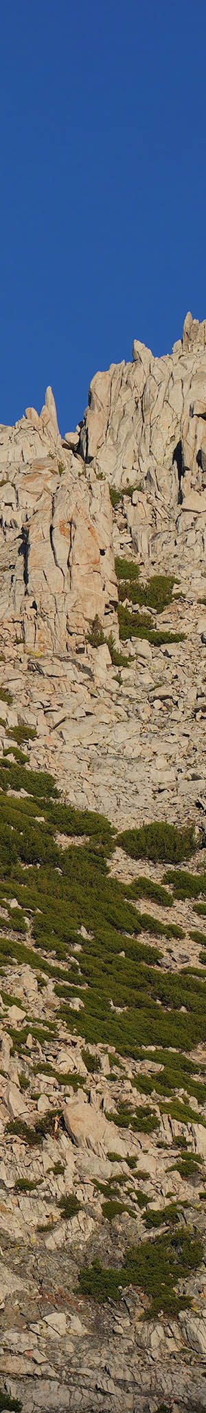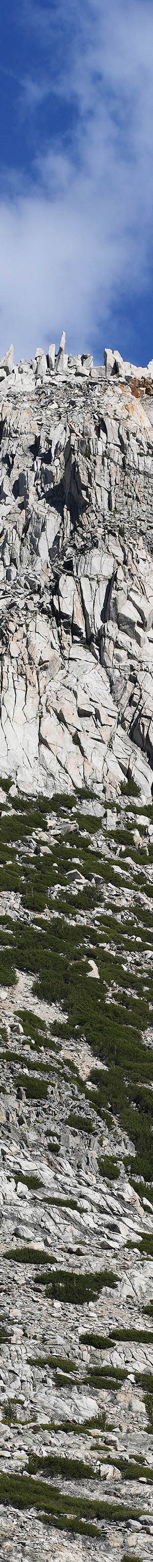 At 4:25pm in afternoon sunlight, worked the west slope view of whitebark pine covered, 12237 foot, Hurd Peak. Peak bagging would be easier on this west side versus the east side.