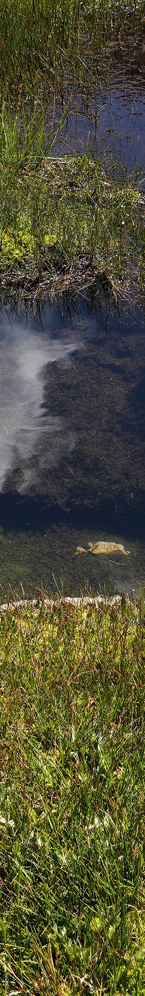 Another mossy turf section of the shore with a white cloud sky reflection shot at 10:38am.