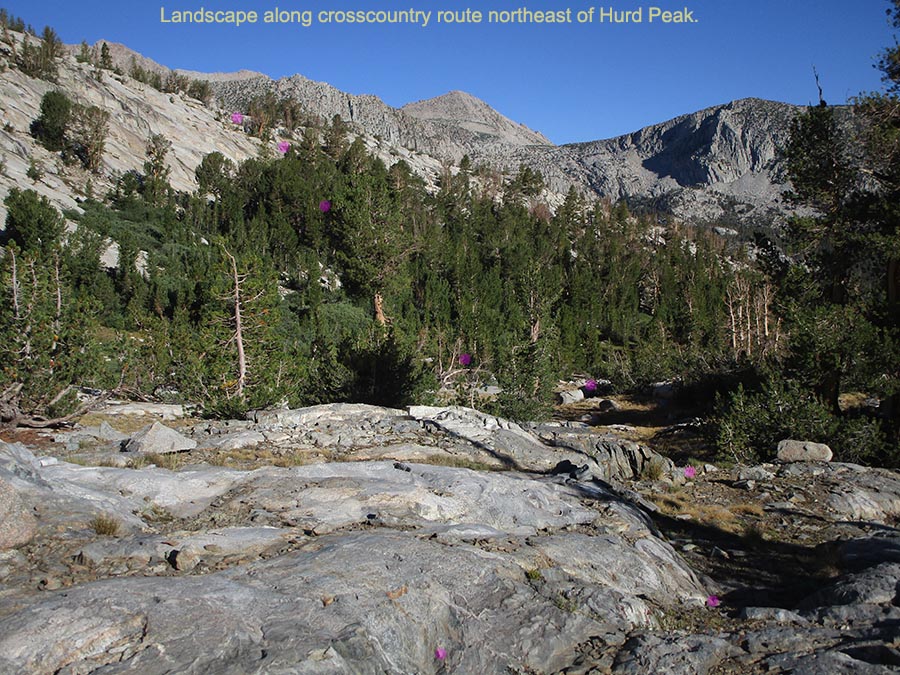 The below image shows landscapes northeast of Hurd Peak with the east rib Class 2 route in magenta dots. There were 3 or 4 seep streams for easy water.