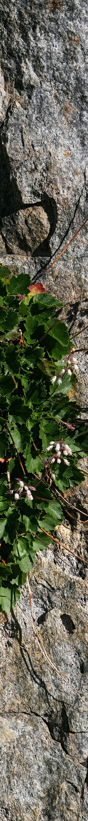 56mm lens close-up of plant growing in crack of a vertical rock wall of glacially smoothed schist.