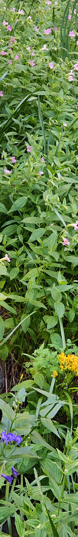 As dawn rose on Saturday July 27, 2024, the breezy conditions were not going to offer anything worthwhile I had not already captured, so we packed up and began hiking out. By 8:14am, at a crossing of the East Lake branch of the West Fork of Green Creek, we reached a dense with wildflowers stream area where after capturing a 1080p short video, used focus bracketing to capture this still image. Unfortunately, even down in this deep forest, a breeze though light, was strong enough that is made plant elements move causing unworkable misregistrations between shots. I was lucky to get just enough of a breeze null so the above mediocre image didn't require much post processing work. Lewis's monkeyflower, mimulus lewisii, monkshood, aconitum columbianum, ranger buttons, sphenosciadium capitellatum, arrow-leaf scenecio, senecio triangularis, silver lupine, lupinus argenteus, crimson columbine, aquilegia formosa.